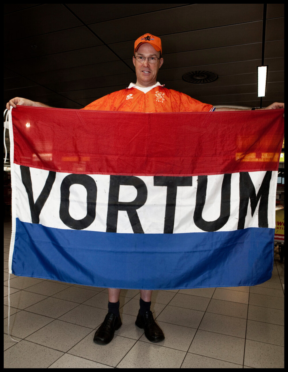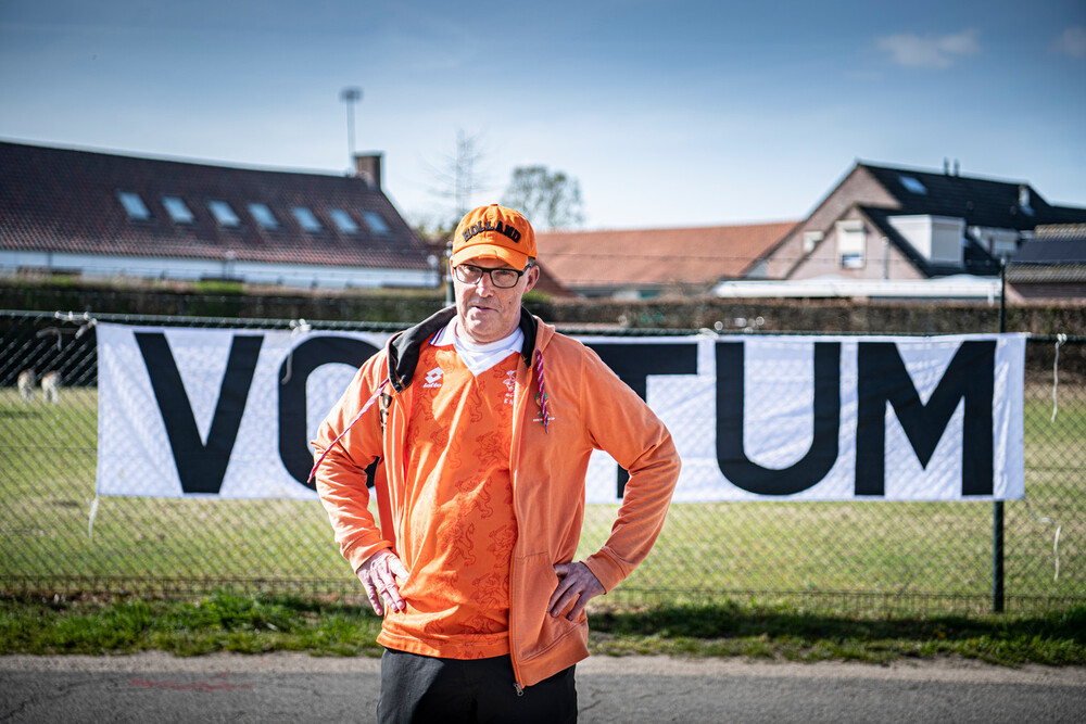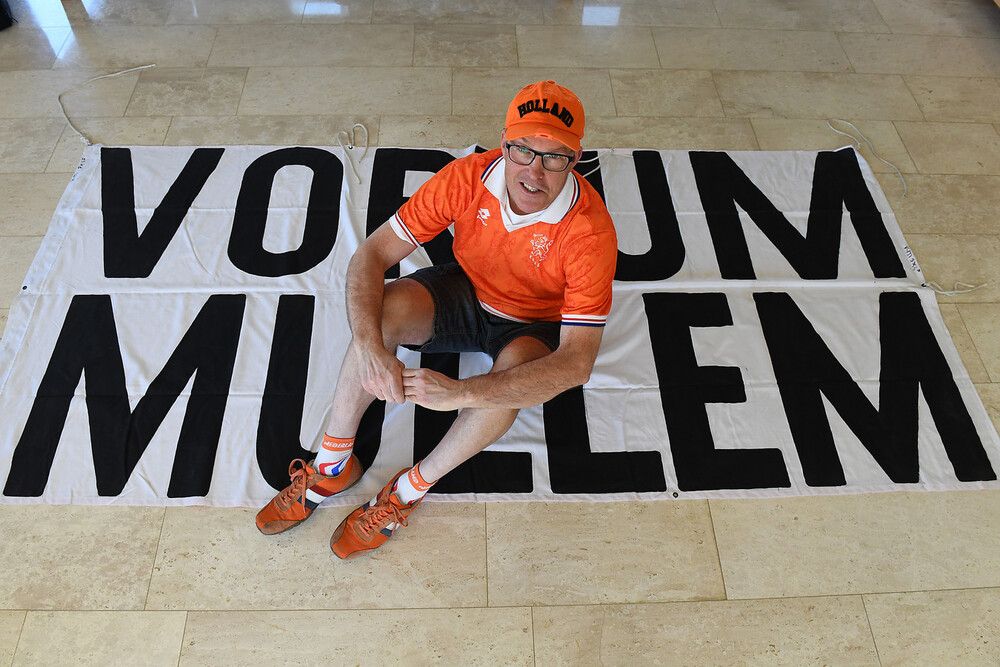 Hij is bijna niet weg te slaan uit voetbalstadions als het Nederlands elftal speelt, waar ook ter wereld. Al tientallen jaren is Arold Arts hartstochtelijk fan van Oranje. Hij kan gewoon over straat lopen, zonder herkend te worden. Maar zijn spandoek met Vortum is wereldberoemd. Het ligt alweer klaar voor het Europees kampioenschap in Duitsland deze maand. Geïmpregneerd en al.