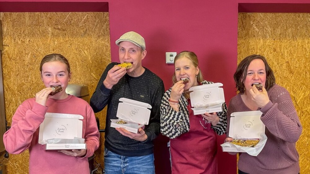 Ze dook vervolgens haar Zoete Post-keuken in en maakte een speciaal Alpe d’HuZes-gebakje. Een zogeheten red velvet blondie met kruidnoten en een topping van melkchocolade rocky road met pecannoten, Oreo-crumbs en sinterklaas-sprinkles. Samen met de sinterklaas-brownie en speculaas-boterkoek is het een (sinterklaas)feestje in een doosje. Alle winst van deze zoete post gaat naar Alpe d’HuZes.